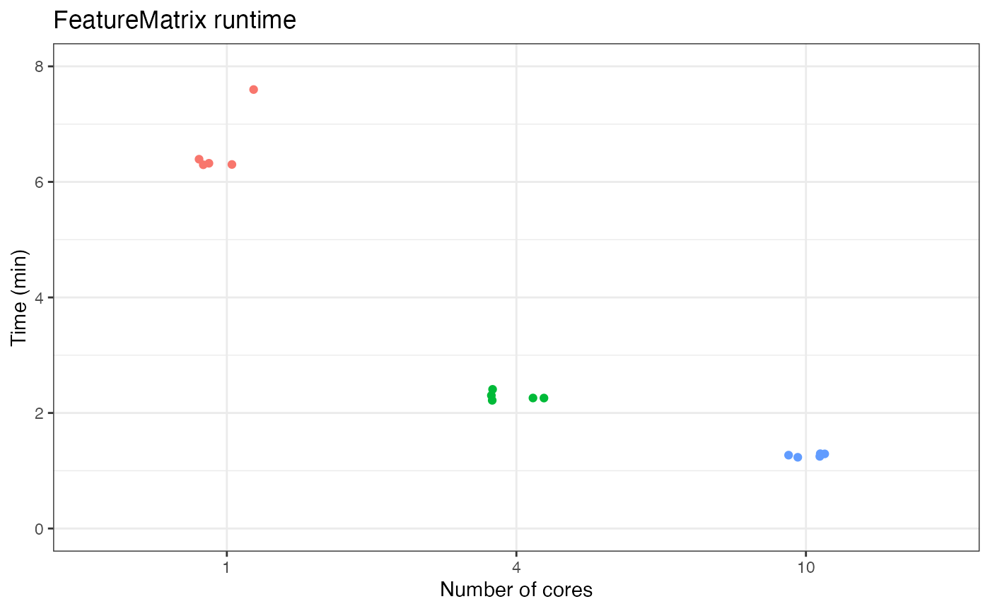Here we demonstrate the runtime of FeatureMatrix run on