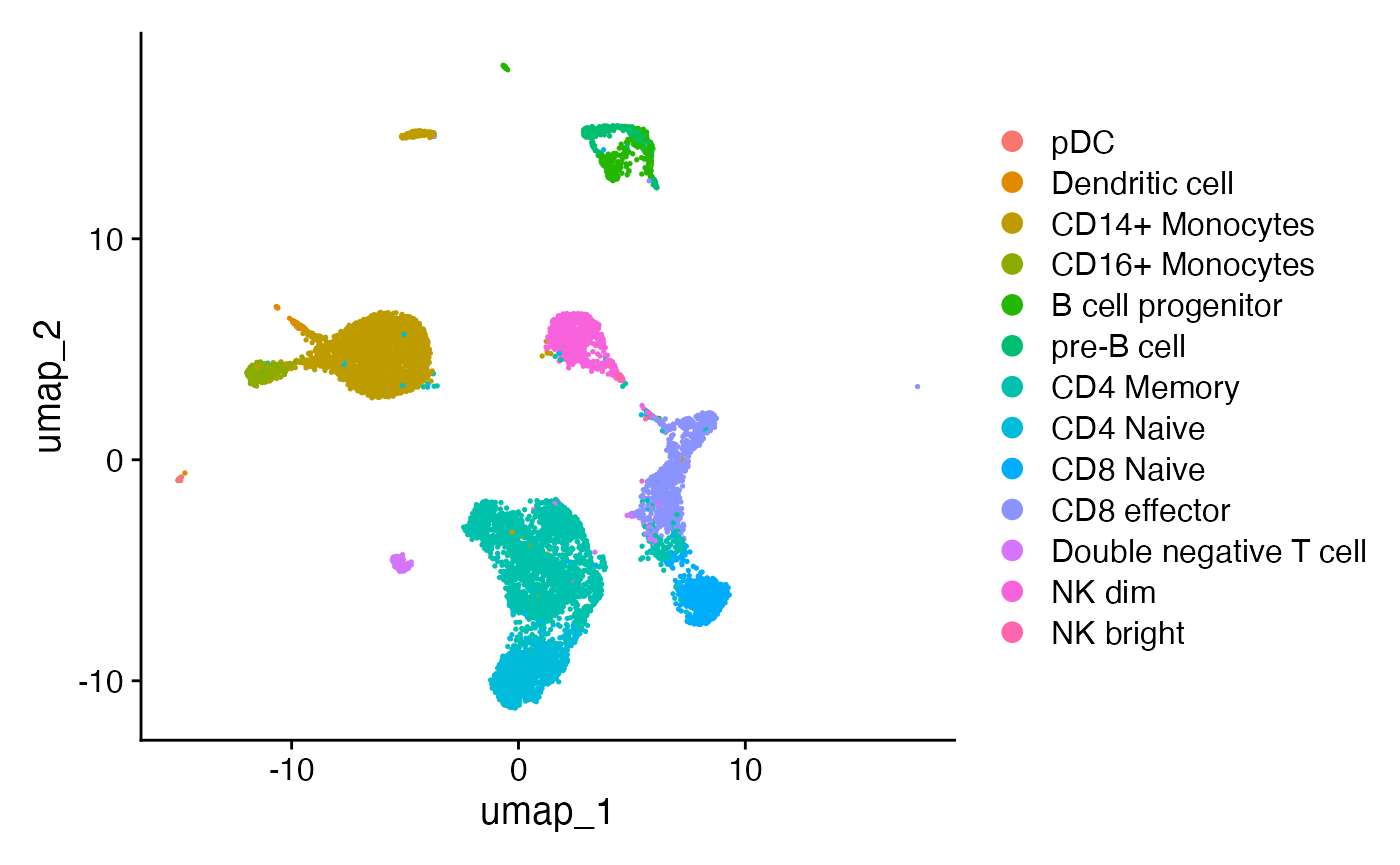 annotated cell type, we can use the group.by argument: