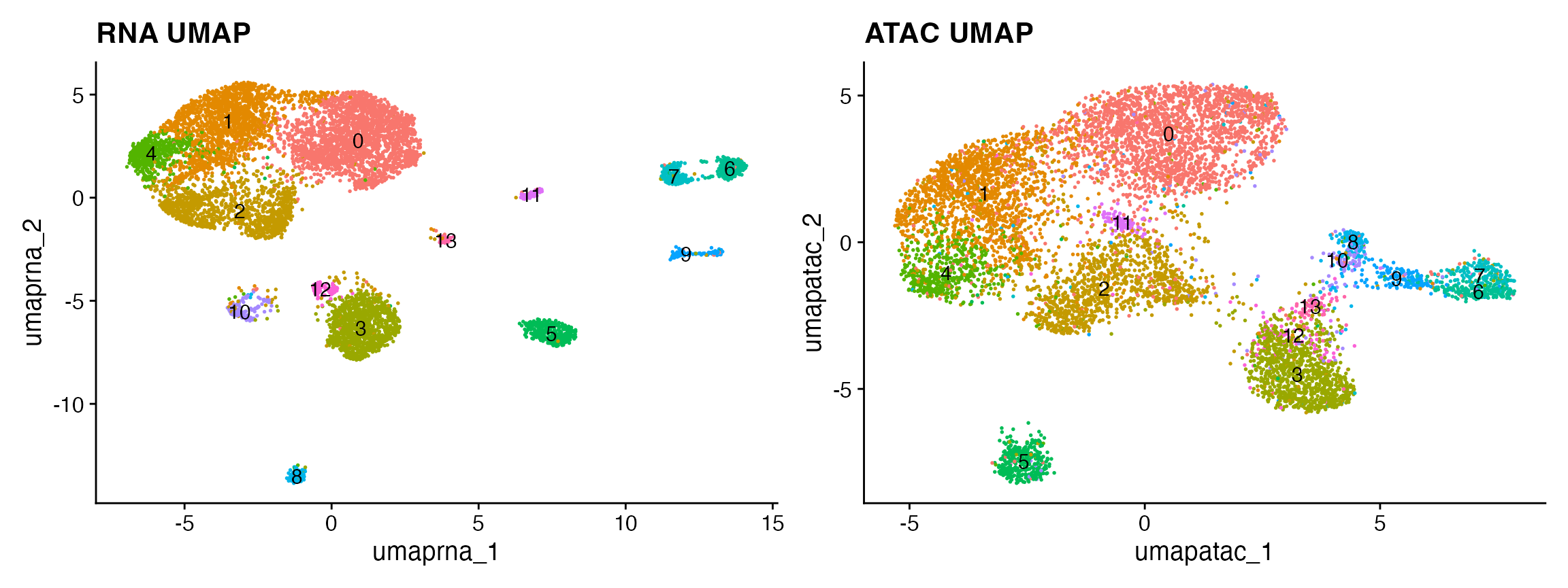 snare <- RunUMAP(snare, reduction = 'lsi', dims = 2:30, reduction.name = 'umap.atac')
