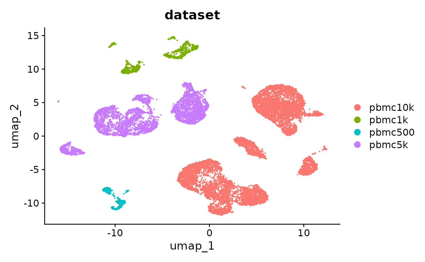 In this vignette we demonstrate how to merge multiple Seurat objects containing single-cell chromatin data. To demonstrate, we will use four scATAC-seq PBMC datasets provided by 10x Genomics: