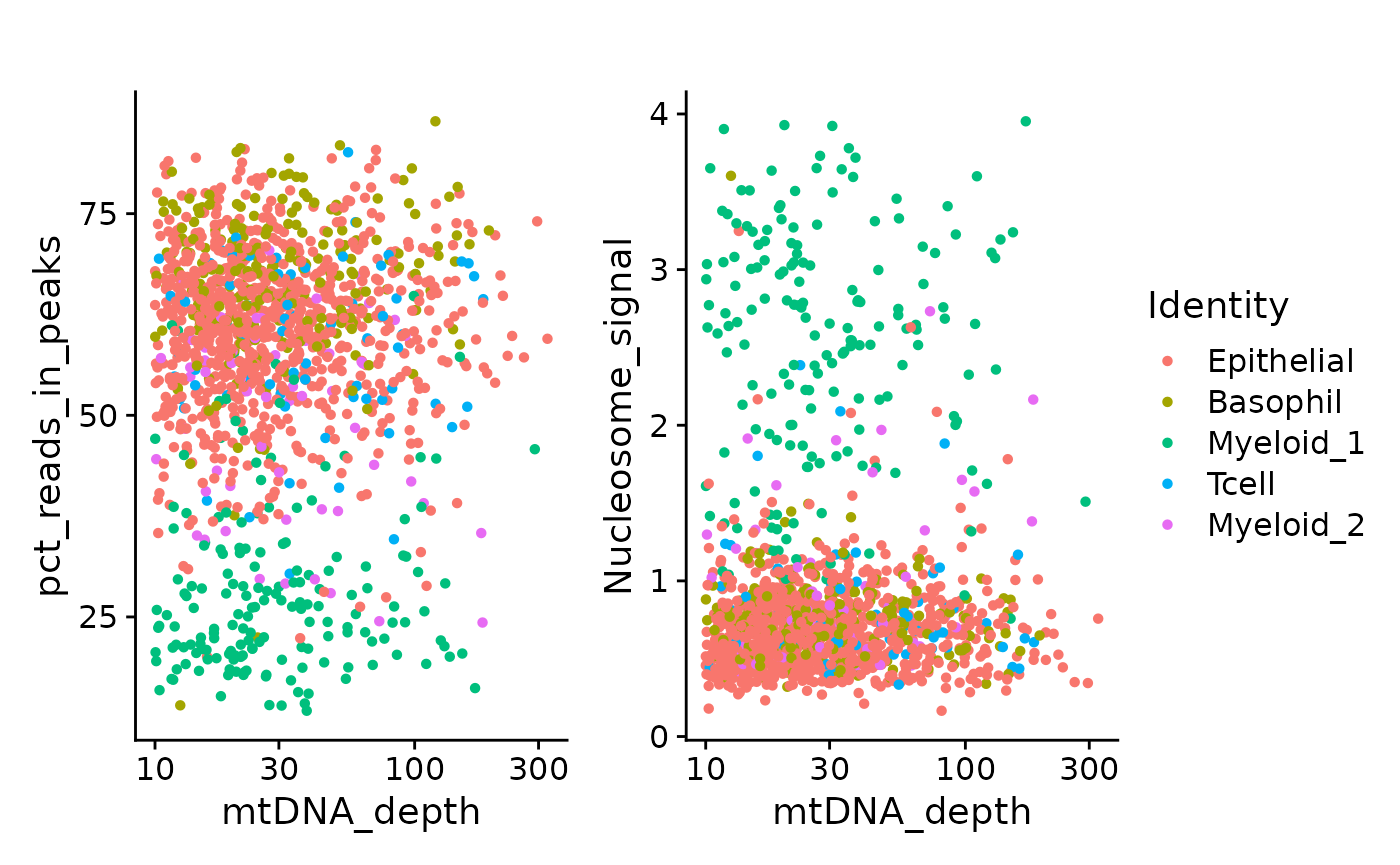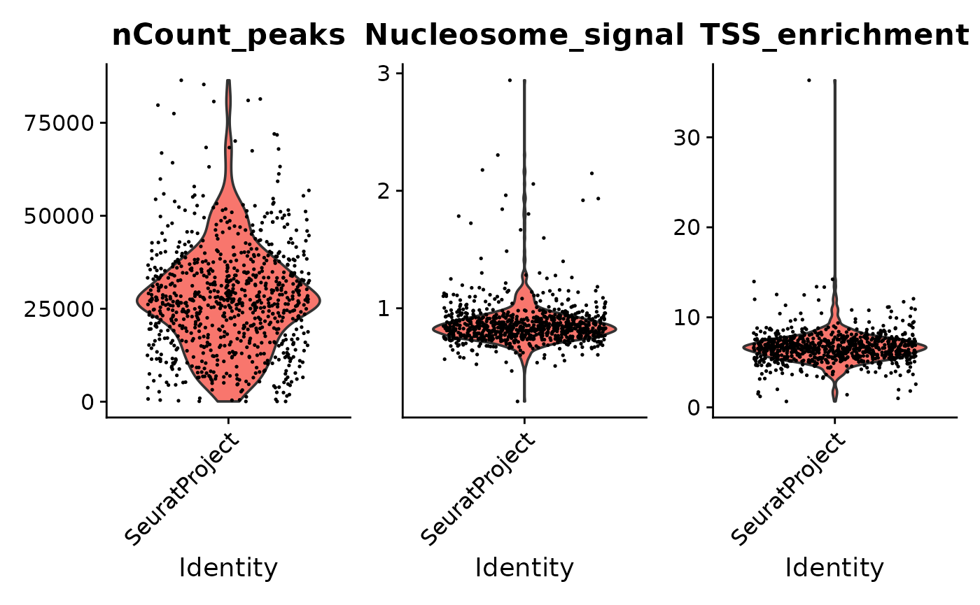 We can compute the standard quality control metrics for scATAC-seq and filter out low-quality cells based on these metrics.