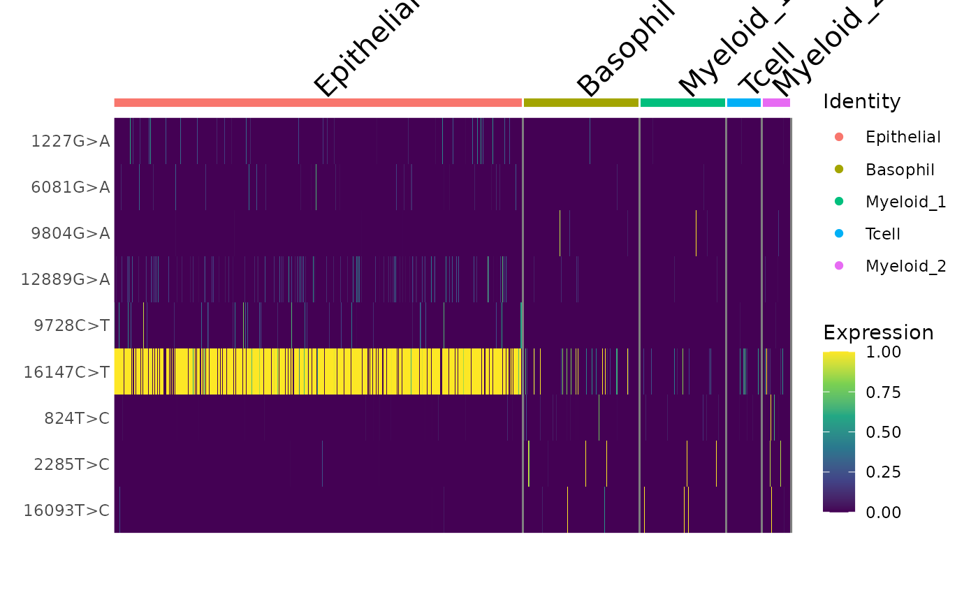 mito.RmdHere, we take a look at two different datasets containing both DNA accessibility measurements and mitochondrial mutation data in the same cells. One was sampled from a patient with a colorectal cancer (CRC) tumor, and the other is from a polyclonal TF1 cell line. This data was produced by Lareau and Ludwig et al. (2020), and you can read the original paper here: https://doi.org/10.1038/s41587-020-0645-6.