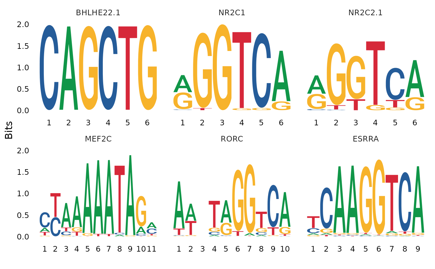 motifs24 <- TFBSTools::getMatrixSet(sq24, list(species = "Homo sapiens", collection = "CORE"))